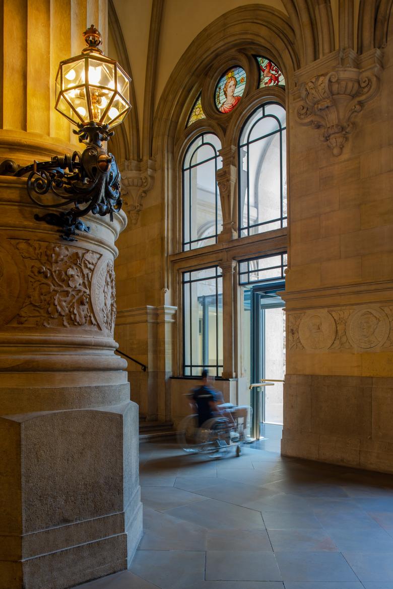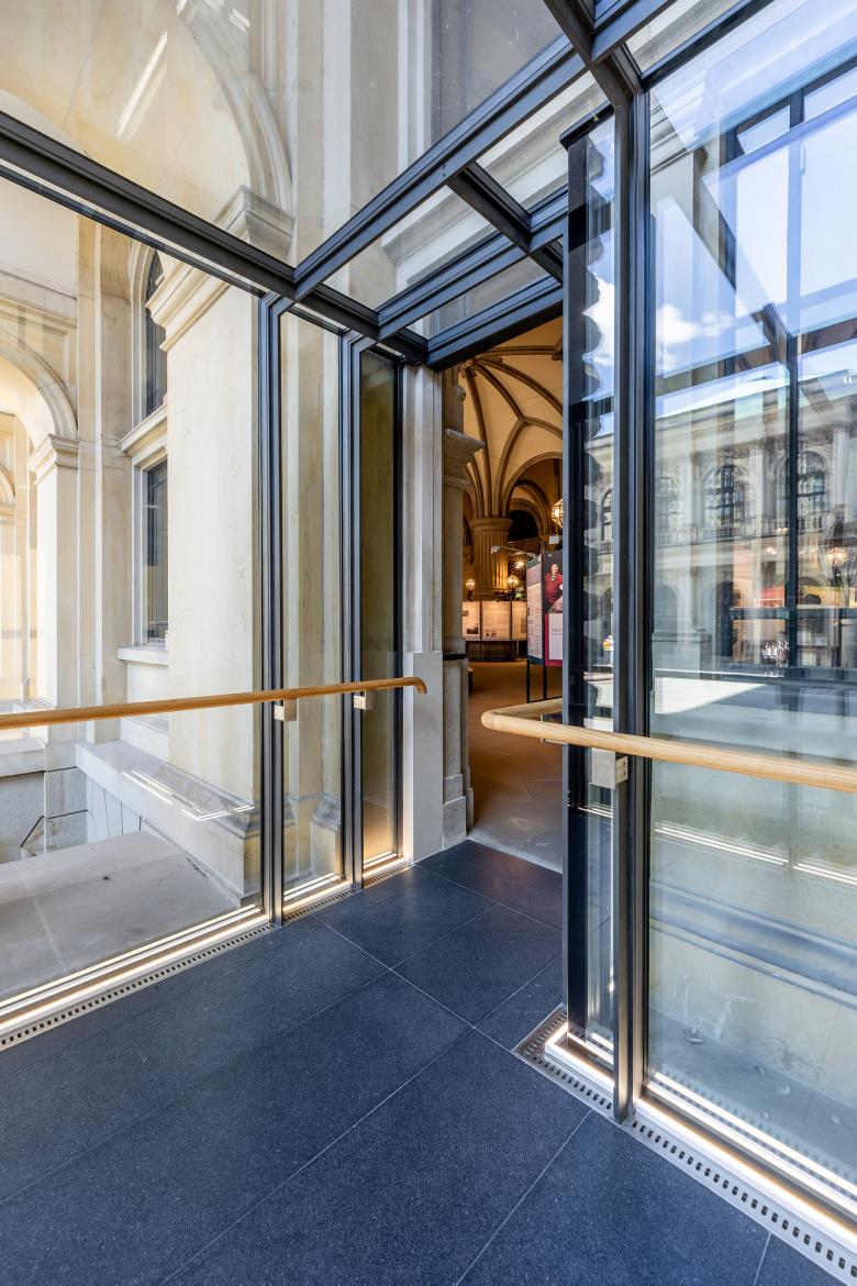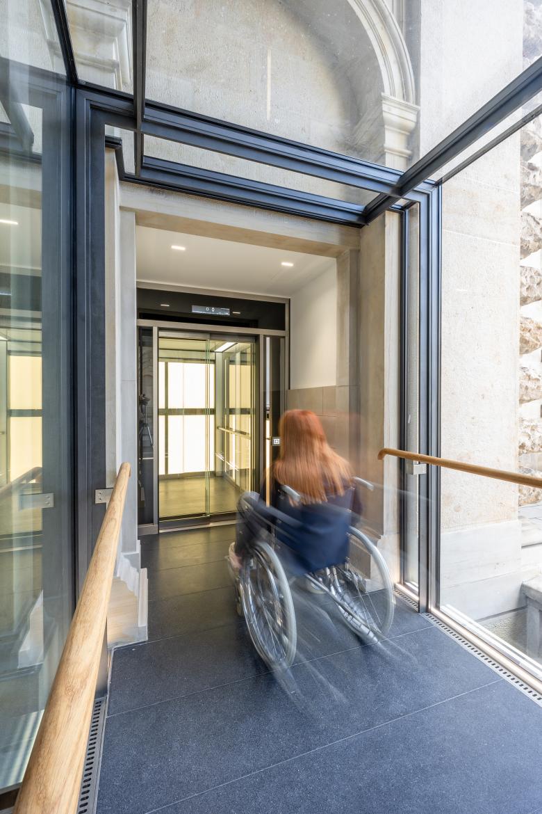 Scheinbare Zielkonflikte von Barrierefreiheit, Denkmalschutz und Technik wurden hier durch qualitätvolle Detailarbeit und kluge architektonische Maßnahmen in Einklang gebracht.
