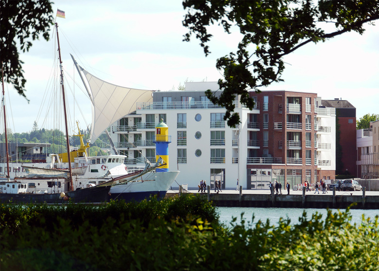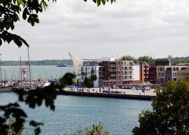 Im ersten Bauabschnitt wurde an der äußersten Spitze des Hafens als erstes von sieben Gebäuden ein Apartmenthaus mit 42 gewerblichen Ferienapartments und Gastronomie im Erdgeschoss gebaut. Durch die exponierte Lage des Gebäudes und die Form der Eckernförder Bucht ist das Gebäude von Wasser und zu Land nahezu von jedem Ort aus erkennbar.
