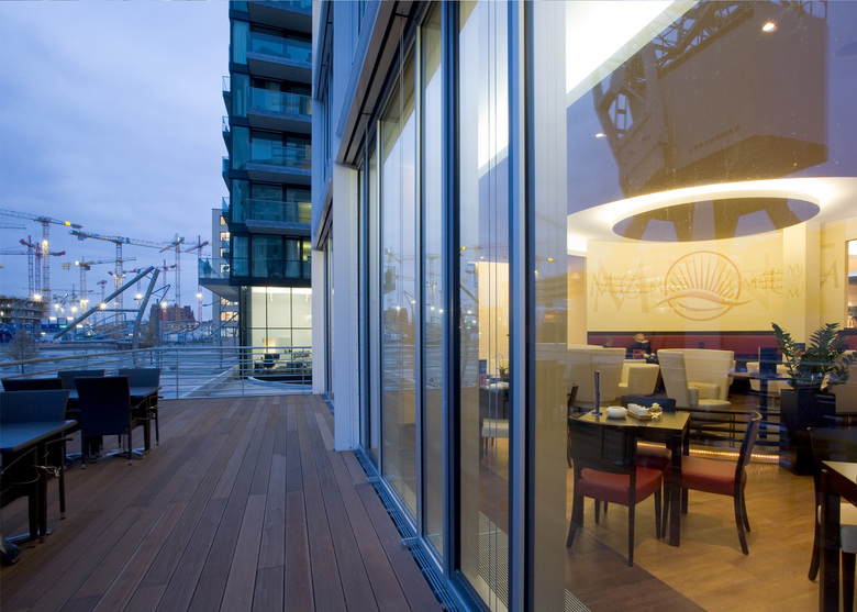 Sowohl Standort als auch die bauliche Umsetzung dienen als repräsentative Webeplattform. Zwei Eingänge führen direkt ins Restaurant bzw. Tee-Museum. Zur Rückseite hin öffnet sich eine imposante Aussicht auf die Hafencity, welche auf der bestuhlten Außenterrasse genossen werden kann. In zwei sogenannten Teetaster-Räumen können Besucher hautnah miterleben, wie neue Teesorten entwickelt werden.