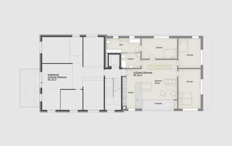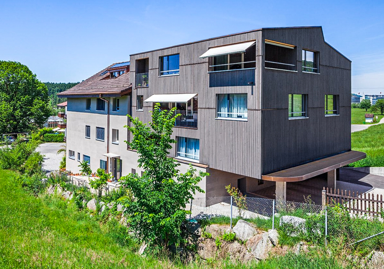 Am Rand des ISOS-Dorfzentrums von Dierikon soll ein "störender Bau" mit einem Anbau und Umbau des Bestandes aufgewertet werden. Ein dreigeschossiger Holzkörper wurde auf den gewerblich genutzten Sockel aufgelagert.