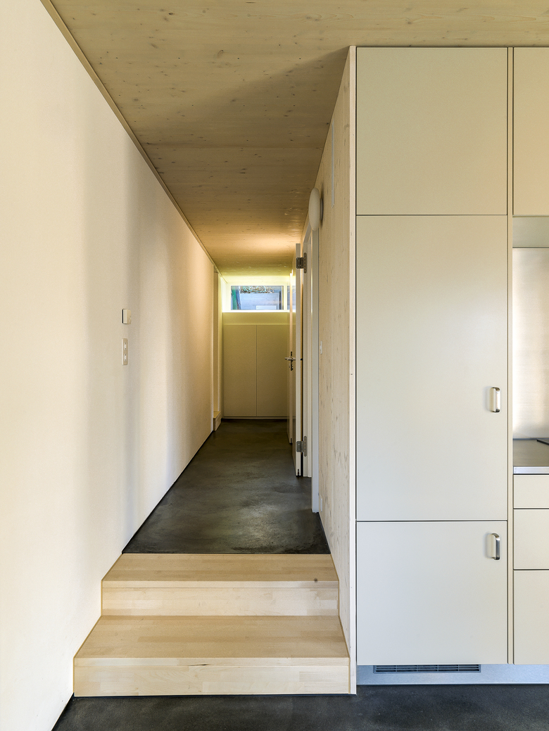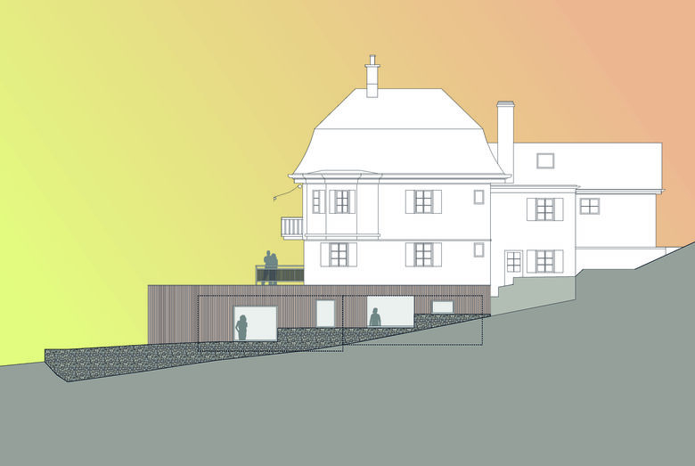 Das inventarisierte alte Wohngebäude aus Familienbesitz erhielt einen flachen länglichen Anbau aus Holz, welcher direkt an den Park hinter der Museggmauer angrenzt. Im Sinne eines "Stöcklis" dient der dazugewonnene Raum einem Teil der Familie als Wohn- und Kunstatelier.