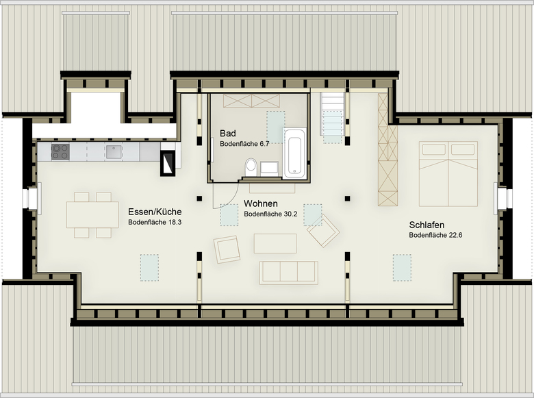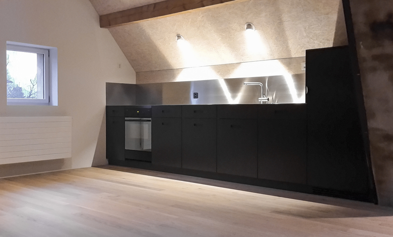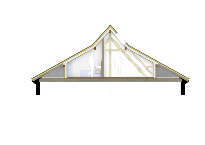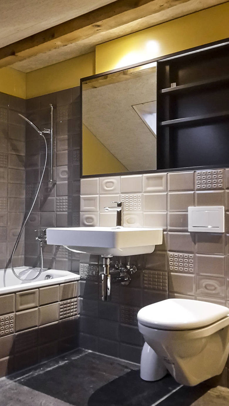 Im denkmalgeschützten Haus an der Obergrundstrasse konnten die Estriche aufgehoben werden, sodass ein grosser, offener Dachstock zu einem Ausbau zur Verfügung stand. Im Vordergrund des Eingriffs stand das Freilegen der beeindruckenden Holzkonstruktion.