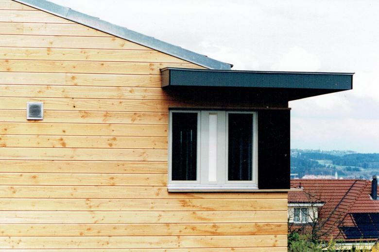 Das Einfamilienhaus, aus einem vorgegebenen Gestaltungsplan entwickelt, in schöner Hanglage am Siedlungsrand des Dorfes mit Sicht auf den Sempachersee, ist ausgeprägt gegliedert um eine entsprechende Nutzung zu erzielen. Das Gebäude besteht aus zwei Baukörpern - einem harten, nicht gedämmten, plastischen Betonkubus und einem leichten, abgesetzten Holz-Trakt. Die Schnittstelle der beiden Konstruktionsteile bildet eine Kaskadentreppe, welche die im Split-Level angeordneten Ebenen erschliesst.