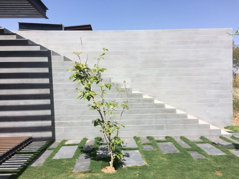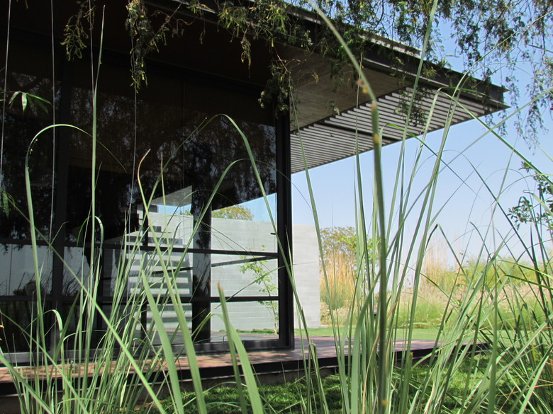 The selected option was further detailed into 4 variants. This particular option was designed so as to minimally disrupt the edge of the fairways, being low slung and flat roofed. In this region mornings as well as evenings are spent under the sky and to promote the same a small feature of a stone staircase was introduced to reinforce the connectivity between the principal living space, the front garden and the green roofed terrace.