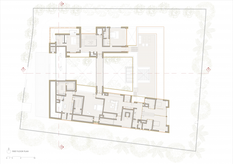 Central to this inquiry was the courtyard—not merely as a typological gesture, but as a performative core. It was imagined as a shaded, verdant lung at the heart of the house—both spatially and climatically generative. Flanking this were triple-height liwans, their scale serving dual purposes: spatial drama and environmental function. These deep transitional zones along the southern edge operated as thermal buffers, mediating between interior life and exterior harshness.