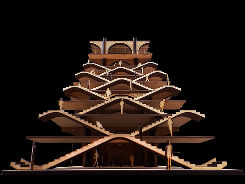 The WIND catches atop the building help ventilate the construct as support to services and fresh air changes. The entire KUND construct, has a stepping surface, this surface becomes a phenomenological traversal of the levels, of time, of finding your own path… Becoming a zone encouraging the INTERFAITH… We see students and teachers meeting, congregating and interacting informally, under the SKY/AAKASH. The mystical universe… We want our building to promote a sense of wonder, a burning passion to learn the essence of these faiths keeping the AGNI of knowledge alive…