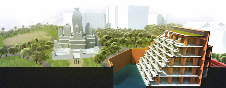 The architectural solution we propose, positions the CONSTRUCT of the building as a modern day KUND… A feature that has been an adjunct to temples from the early ages, where the very genesis of life was performed.