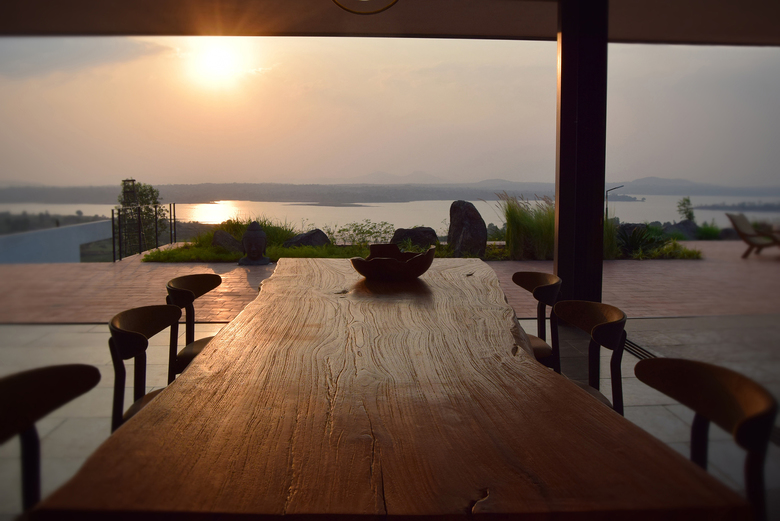 The home predominantly faces the farmlands, a reservoir and the highlands in the distance, witness to the most color saturated sunsets.