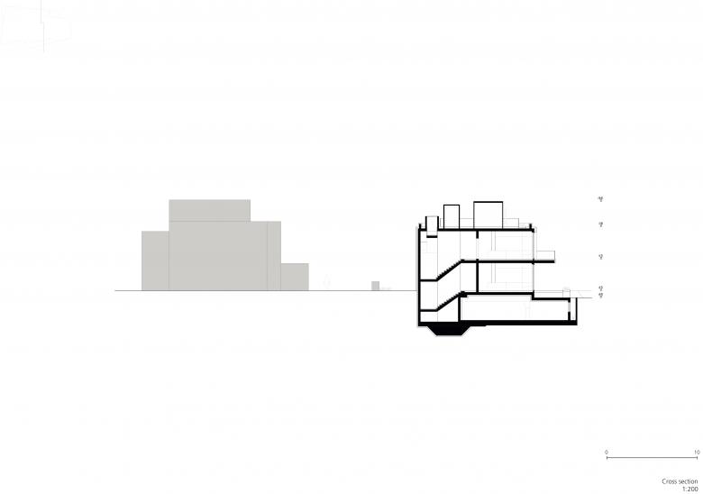 Das Gebäude orientiert sich volumetrisch an der Geometrie des Grundstücks und weitet sich ebenfalls in Uferrichtung auf. Die Form des Gebäudes ist mit schwungvollen Rundungen abgestuft, welche dem Baukörper eine optische Gliederung verleihen. Die Höhe des Gebäudes sowie die Anordnung der Etagen