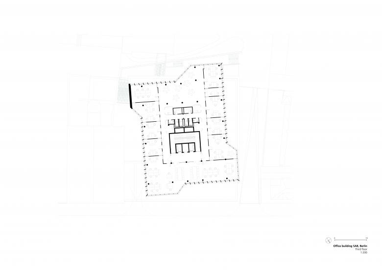 Seit rund 100 Jahren wird auf dem Gelände der ehemals größten Brauerei Berlins kein Bier mehr gebraut. Nach wechselvoller Geschichte unterliegen die Gebäude heute einer Mischnutzung durch Kiezinitiativen, Medienfirmen, Gastronomie und Start-Up-Unternehmen. Das denkmalgeschützte Gewerbehofensemble der Brauerei Königstadt AG geht auf die bereits 1849 gegründete „Wagner’s Bairisch-Bier-Brauerei“ zurück und besteht heute aus sechs historischen Gebäuden, die den Büroneubau umrahmen: Das ehemalige Lagerhaus des Industriedenkmals aus dem Jahr 1872 grenzt unmittelbar an SAB. Der ehemalige, teils freigelegte Gewölbekeller, der als Bier-Lagerraum genutzt wurde, blieb erhalten und wurde in den Neubau sensibel integriert.