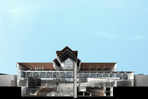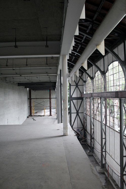 Con el fin de alcanzar estándares internacionales de exhibición, el proyecto se plantea como un volumen inserto dentro de la estructura original. El pabellón se mantiene intacto y funciona como un armazón que envuelve el volumen añadido. La estructura de la inserción es completamente independiente y produce una serie de galerías en rampa que ocupan el edificio antiguo y al mismo tiempo apenas si tocan el piso.