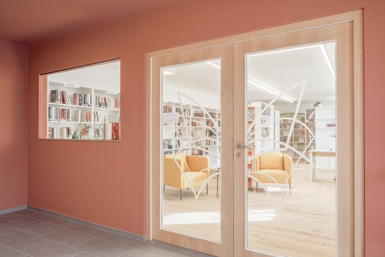 Die vorhandene Struktur wurde weitestgehend belassen, die ehemalige Garage jedoch mit einem neuen WC, einem Besprechungsraum und der Kanzlei in den Raumverbund integriert. Im Untergeschoß wurden die Räumlichkeiten für die Bibliothek adaptiert und eine neue WC-Anlage errichtet.