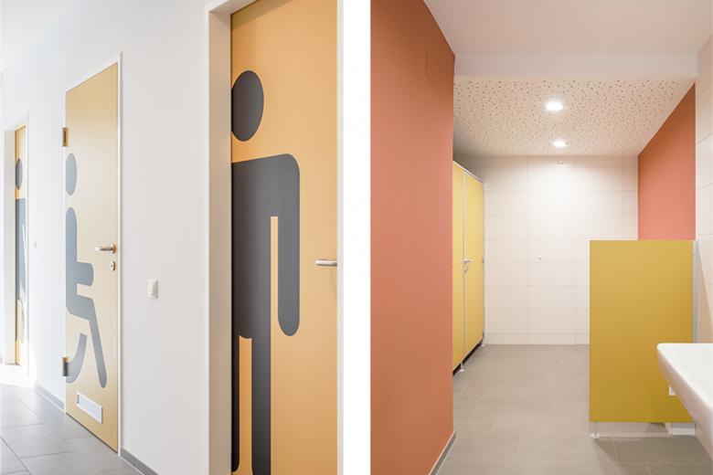 Die bestehende Gebäudehülle wurde thermisch komplett saniert, alle Kanalleitungen, die komplette Elektro- und sanitäre Ausstattung, sowie die Fenster und Portale wurden neu errichtet.