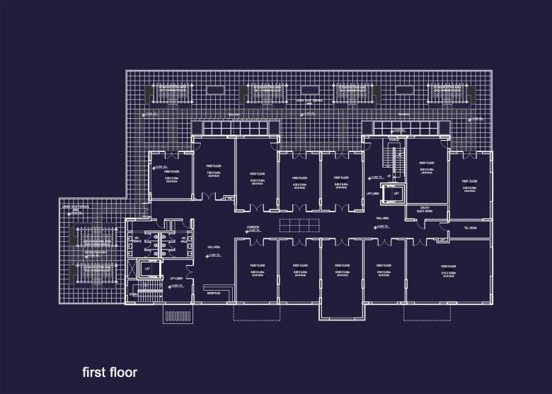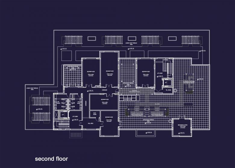 On the ground floor, there are spaces for shops and possibly small cafeterias on the street. On the upper floors, there are shops and businesses with internal windows and office spaces. On the first and second floors, there are terraces with pergolas to be able to go out and have an outlet to the outside. These terraces offer the spectacular view of the nearby desert dunes. The roof level is occupied by systems shielded by parapets up to almost 3 meters high. On each floor there are services and bathrooms.