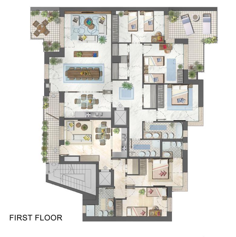 In the center of Milano, a refurbishment project of a residential luxury building built during seventies placed in internal historical courtyard. The new owner wants to cut the existing building into new smaller, more commercial and more contemporary flats. The design will be pure modern contemporary reflecting the original age of the building: the seventies. Each flat will have its own private lift entering directly into.