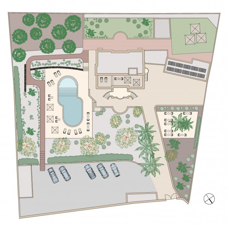 The redefinition of the external spaces also proposes a reinterpretation of the garden, introducing new pathways and paving, new Mediterranean native plantings, and the use of gravel alternating with hard surfaces.