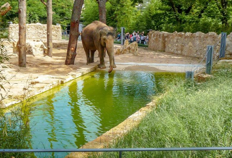 Der neue Freibereich der Elefantenanlage im Zoologisch-Botanischen Garten der Wilhelma in Stuttgart, ersetzt eine über 40 Jahre alte Anlage, die den gestalterischen und tierhalterischen Anforderungen nicht mehr gerecht wurde. In Anlehnung an den Charakter einer Savanne, entsteht mit Formgebung und verwendeten Materialien ein naturnahes Landschaftsbild. Die Abgrenzung der Anlage wird mit Krustenplatten aus Travertin und naturnah gestalteten Betonmauern gefasst. Großflächige Ziergras- und Bambuspflanzungen binden die Anlage in die Umgebung ein und unterstützen das Erscheinungsbild, dass sich am natürlichen Habitat der Tiere orientiert. Einblicke, in das von Mauern und Bepflanzung eingefriedete Gelände werden über Blickfenster gestaltet. Hierzu gehört der größere, östliche Zuschauerbereich und eine neue „Tribüne“ im südlichen Bereich. Gesägte Blöcke aus Travertin sind Aufenthaltsmöglichkeiten für die Besucher und inszenieren den direkten Blick auf den Freibereich der Elefanten. Eine Gruppe aus Eichenstämmen bildet im Gehege ein „Wäldchen“ und dient den Elefanten als beliebte Scheuerbäume. In direkter Nähe zur Tribüne ist das neue Elefantenbad attraktiver Punkt zur Beobachtung der Tiere.
