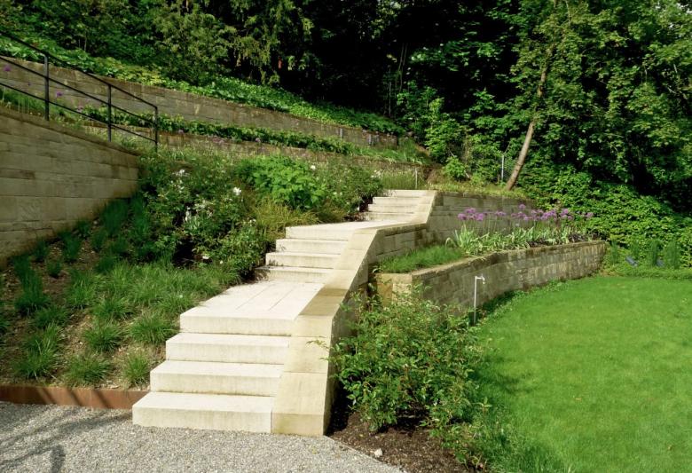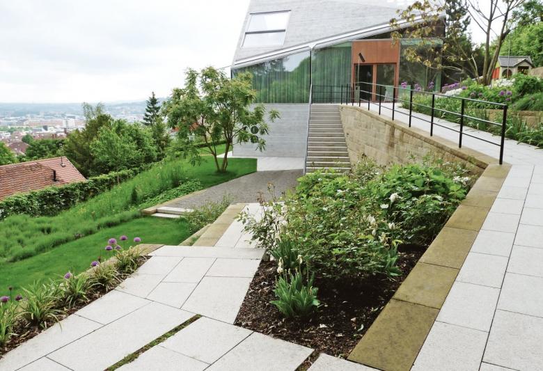 Auf einem Nordgrundstück in steiler Stuttgarter Hanglage ist mit dem Neubau des Privathauses „Villa H36“ ein hochwertiger Privatgarten entstanden. Die expressive Linienführung der Dachschrägen wird als gekantete Linienführung in den Garten übertragen. Gartenebenen gliedern das Grundstück auf einem Höhenunterschied von zehn Metern und schaffen unterschiedliche Nutzungsschwerpunkte und Orte des Aufenthalts. Die prägnanten Natursteinmauern aus Sandstein folgen der gekanteten Linienführung. Die Materialität und Oberflächenbearbeitung der Mauern vermittelt eine warme und haptische Atmosphäre. Pflanzbänder aus Stauden und Gräsern folgen der Linienführung der Gartenterrassen und bilden die jahreszeitlichen Aspektbilder.