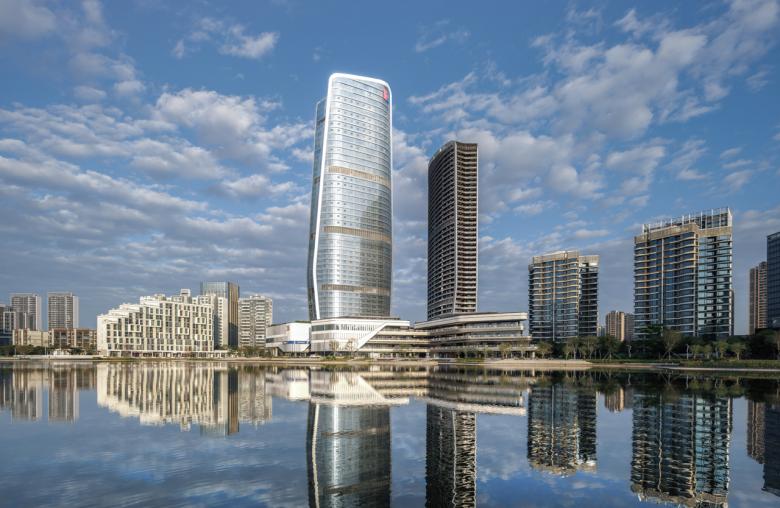 Located on a prime waterfront site in Zhuhai, China, the 172,033 sq m International Business Centre (IBC) is a mixed-use complex comprising hotel, office, serviced apartment and retail spaces.