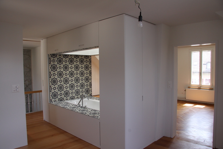 Vorgängig erarbeiteten wir ein Unterhaltskonzept mit voneinander möglichst unabhängigen Modulen. Bei den Modulen wurde darauf geachtet, dass Steigzonen durchgehend erneuert und nachfolgende Etappen vorbereitet werden konnten. Eigenleistungen der Bauherrschaft wurden in den Bauablauf integriert. Die Eingriffe wurden kompakt geplant, damit das Wohnhaus möglichst durchgehend bewohnbar blieben.