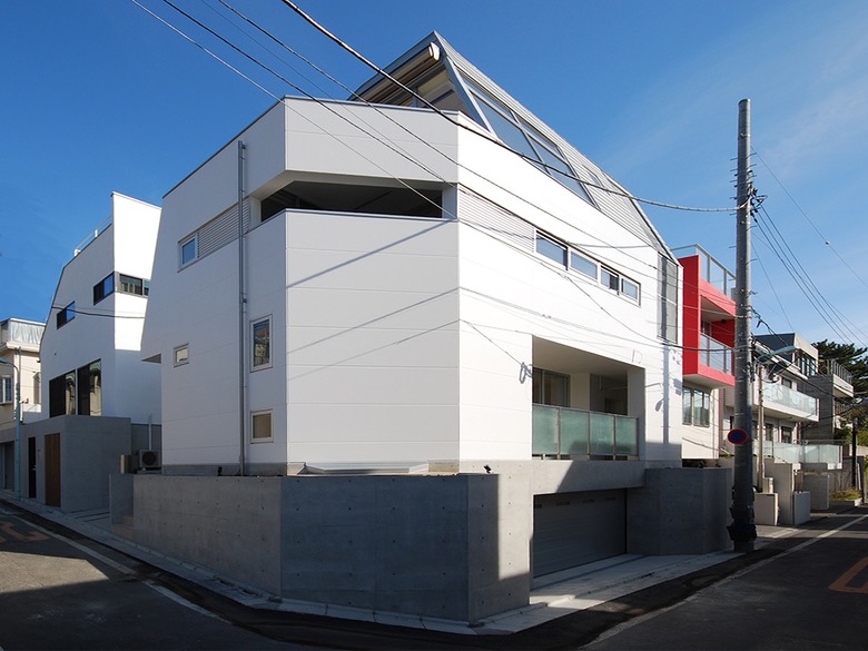 敷地高低差を用い地下容積緩和を極限まで活用した容積最大化、2世帯+ガレージ+事務所が将来、分割・貸与できるゾーニング、天空率を用い道路斜線を超えて最大限に拡げた3階のリビング、居室空間を全く削らず全階停止できるホームエレベータの配置、S造+RC造ながら断熱性もクリアして取得した長期優良住宅…など、現代の消費者目線で都市住宅に求められるほぼ全ての要求を、高度なパズルを解くように獲得した高スペック多世帯住宅。これが出来れば解けない難題はないという自信もつきました。