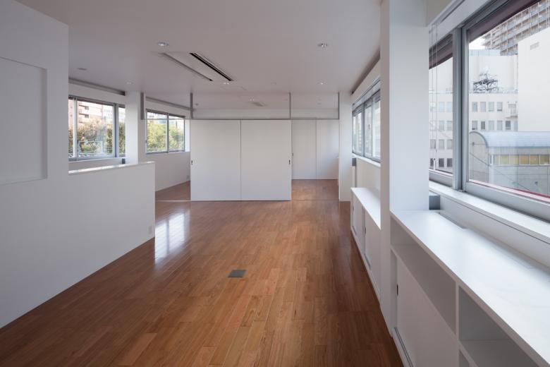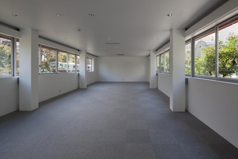 また室内は、対岸の公園の緑を最大限借景すべく全幅横連窓とし、雑然とした渋谷の地で、身も心も快適な執務環境を目指しました。