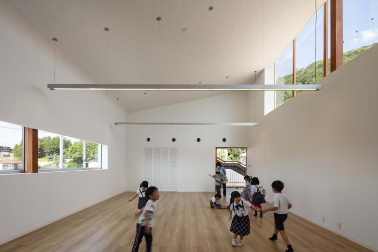 遊戯室 / 山の勾配を模した屋根と開口配置による借景