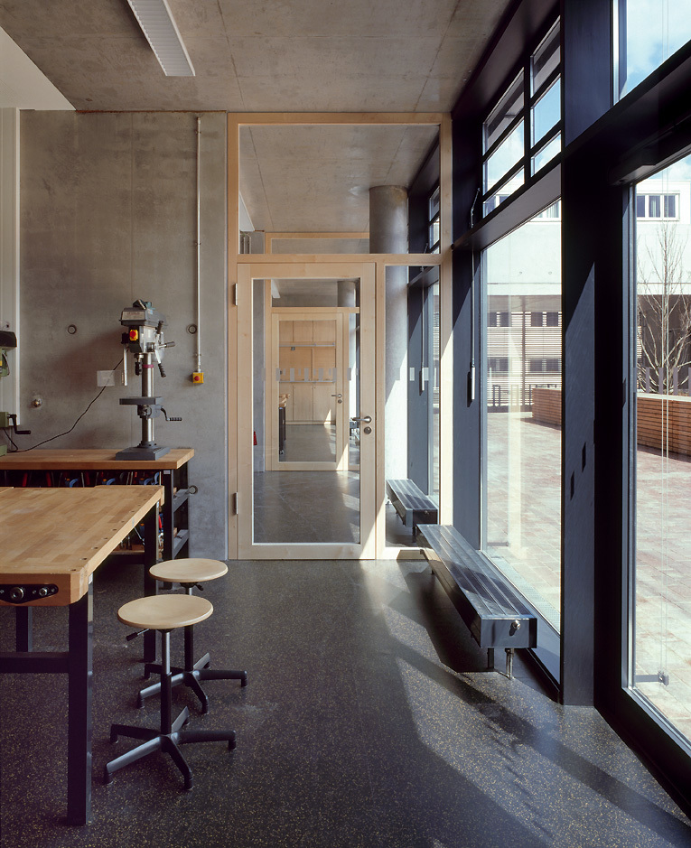Das pädagogische Konzept sieht vor, durch die eindeutige Zuordnung der Funktionen zu den Geschossen und die offene Haupttreppenanlage eine gute Orientierbarkeit im Gebäude zu schaffen. Durch Aufweitungen in den Fluren und Galerien entstehen Bereiche, die der Kommunikation dienen.