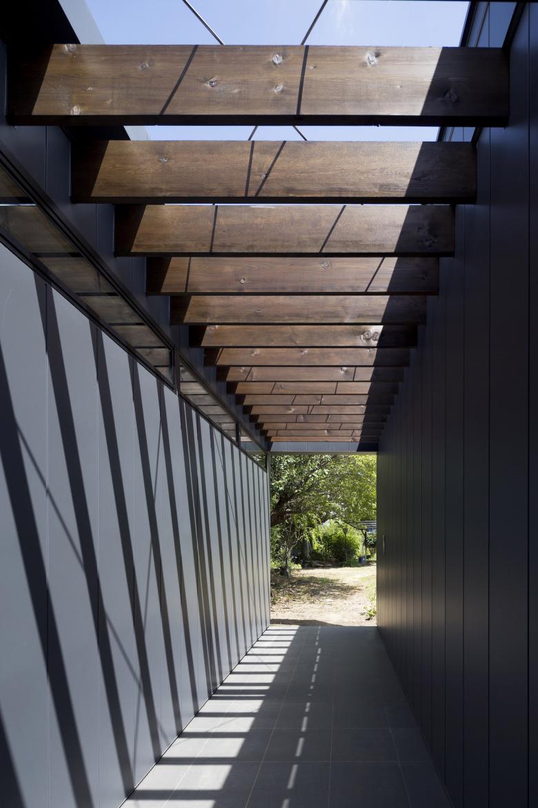 母の家に隣接する敷地を利用して作られた息子夫婦の家であり、母は自宅と息子夫婦の家を行き来しながら、好きな場所で過ごすことができる、新しいかたちの二世帯住宅。