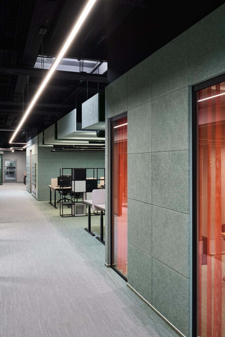Die heutigen Büroflächen wurden ursprünglich als Teil der Produktionshalle errichtet und vor etwa 25 Jahren auf einfache Weise in Büroräume umgenutzt. Dabei blieb die tragende Hallenkonstruktion – einschließlich der markanten Trapezblechdecke mit sichtbaren Stahlträgern – erhalten.