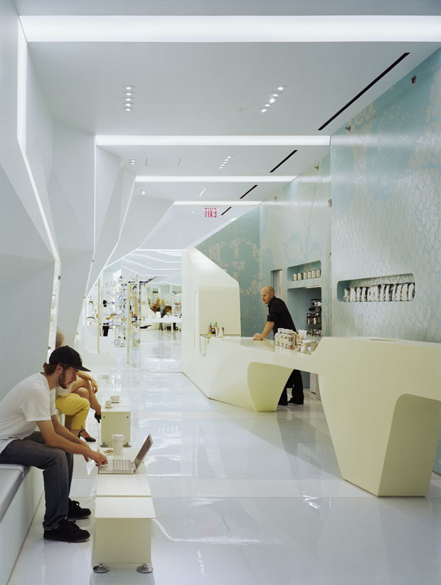 The Alessi Flagship Store at 130 Greene Street in SoHo opened to the public in September 2006. Commissioned to create a new identity for the Alessi brand, Asymptote designed not only the store’s interior architecture, but also all of its graphic elements from wall graphics to packaging to a unique modular display system. The store also features an espresso bar and gallery/exhibition area that expands the conventional retail program. In 2007 the store was named Travel + Leisure magazine’s Best Retail Space and received an AIA New York Chapter Design Award.