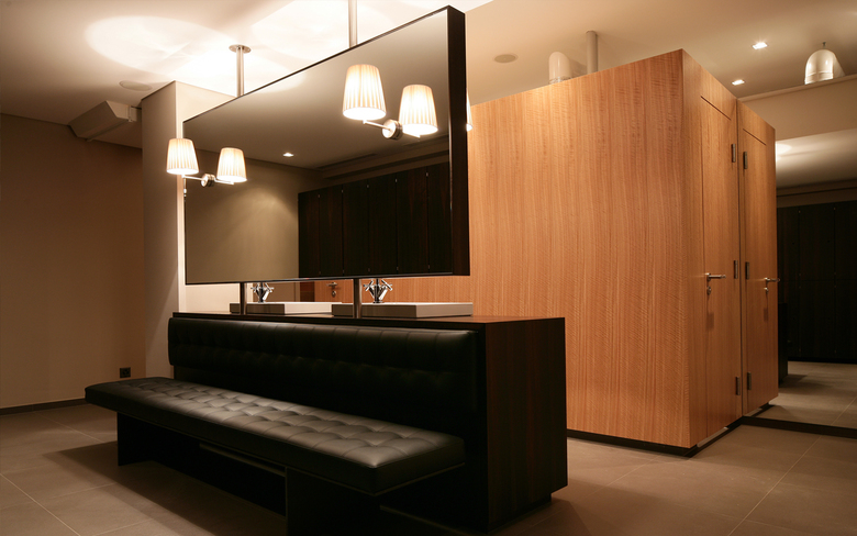 Im Untergeschoss entstanden durch geschickte Raumaufteilung wohnliche Umkleiden und Wellnessbereiche.
