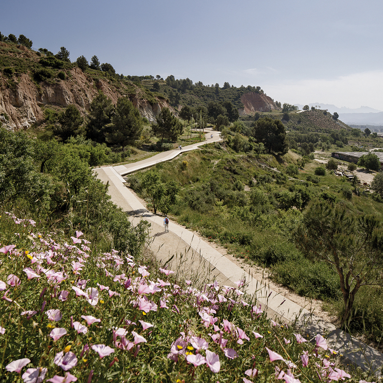 The work is framed within the global project of the Igualada’s Green Ring, which aims at creating a set of pedestrian and bicycle itineraries in the form of a green belt on the perimeter of the city. The natural space through which the path passes has a highly degraded state. It was subjected to intense extractive activity of existing plaster in its subsoil (Guixeres of the Claret and Pelfort). Afterwards, once this activity ceased, the area was used as a municipal waste transfer station.