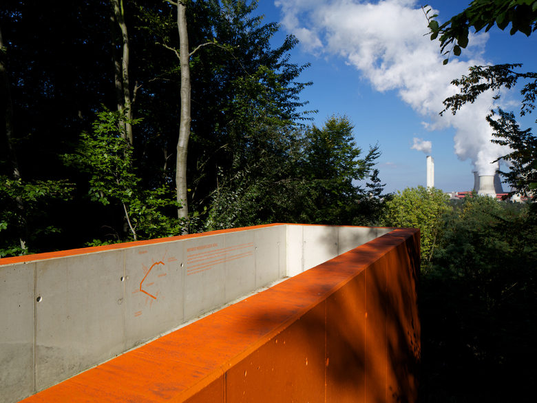 Der Rhein-Erft-Kreis westlich von Köln ist wesentlich durch Braunkohletagebaue geprägt und wandelt sich ständig. Die industriellen Eingriffe lassen bizarre, einzigartige Bilder und Landschaftsabschnitte entstehen. Deren Qualitäten sind identitätsstiftend für die Region und ihre Bewohner und müssen weiter entwickelt und ergänzt werden. Die Verantwortlichen für die Regionale 2010 haben deshalb in Zusammenarbeit mit den Kommunen Bergheim, Bedburg, Elsdorf und dem Rhein-Erft-Kreis einen Kulturlandschaftswandlungsprozess angestoßen.Ziel war es, die vorhandene, durch die Braunkohletagebaue überformte Landschaft in eine Energiekulturlandschaft, eine Landschaft nach der Kohle zu transformieren. Die Bandtrasse wird zum BiosphärenBand und zum zentralen Rückgrat des Energieparks Rhein-Erft. Als Rückgrat des Energieparks Rhein-Erft symbolisiert das BiosphärenBand die Energieströme und stofflichen Umwandlungsprozesse. Die Bandtrasse wird in ihrer künstlichen Ausprägung weiter überformt und erzählt in Sequenzen die Geschichte der Geologie der Erde und der Entstehung von Braunkohle im Hambacher Flöz. In dem das BiosphärenBand die vorhandenen Landschaftszüge kontrastiert, macht es deren Eigenarten um so deutlicher. Wo die Börde offen und unbewaldet ist, zeigt das Biosphären Band Waldgesellschaften. Wo auf der Ville Gehölzflächen liegen, arbeitet das Band mit niedrigen Vegetationsformen. Großzügige Öffnungen im Damm an ausgewählten Orten lassen wechselseitig immer wieder Ein- und Ausblicke aus den Landschaftsräumen des BiosphärenBandes und der umgebenden Energielandschaft zu. Das Profil des BiosphärenBandes weitet sich an ausgewählten Stellen zum Landschaftsfenster. Der Raum wird heller und weiter, die Blicke der Besucher werden auf die angrenzenden Landschaftszüge gelenkt.