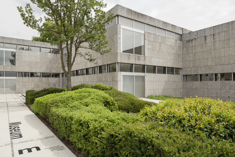 Die gemeinsame Arbeit von Kuehn Malvezzi und Michael Riedel in Zusammenarbeit mit bbz landschaftsarchitekten, entwickelt die Moderne Galerie und ihre Freiräume als künstlerisches Gesamtensemble. Aus dem Raster, auf dem der modernistische Entwurf Hanns Schöneckers beruht, wurde eine zusammenhängende Freifläche generiert, die Ausstellungspavillons und Skulpturengarten miteinander verbindet. Die Fassade des Neubaus entstand durch das Einschneiden und Falten dieser Fläche um seine Außenwände. Innen- und Außenraum werden verschränkt, sowie Platz und Fassade, indem sich Architektur und Kunst verbinden. Der Entwurf ist eine skulpturale Installation, die Schrift als Formträger einsetzt und eine andere Lesbarkeit des Orts erzeugt. Die Tonaufnahme der entscheidenden Parlamentsdebatte über die Umsetzung des Konzepts von Kuehn Malvezzi und Michael Riedel am 22. April 2015 wird in ein Schriftbild übersetzt, das direkt auf 4 m x 4 m große Werksteinplatten gedruckt wurde und auf Platz- und Fassadenteilen erscheint.