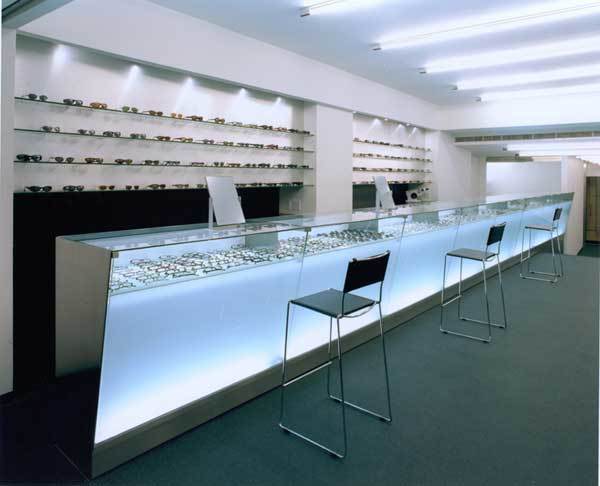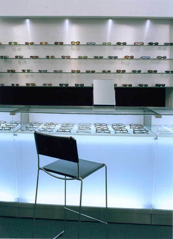 The fourth in a series of retail stores for this client, the shop occupies a long narrow space that runs from Madison Avenue through to the lobby arcade of the Roosevelt Hotel. The minimalist interior is dominated by a thirty-six foot long internally-lit sales counter. The window display incorporates a video projection of faces onto a plaster head.