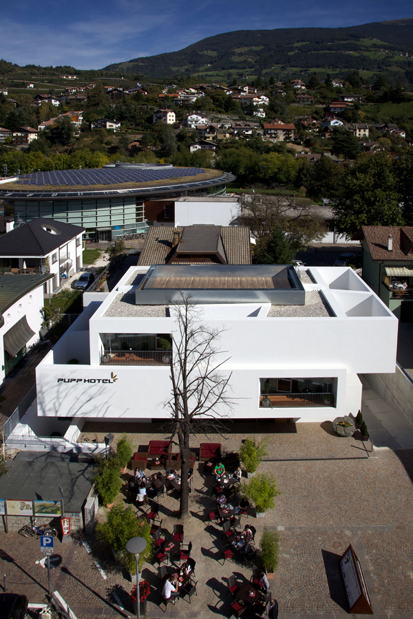 das hotel an einer schnittstelle der stadt, an einer schnittstelle zwischen innen und außen, zwischen tradition und moderne. ein übernehmen der merkmale, charakteristiken der stadt. die idee eines kompakten baukörpers geschossweise zu zerlegen um genügend licht ins innere zu lassen. ein spiel mit lichthöfen. die einzelnen geschosse werden horizontal verschoben, um einen freien und trotzdem kompakten baukörper zu erhalten. schubladenartig bewegt sich der raum; wo sich die altstadt in vertikale sektoren aufteilt, gewinnt sie hier die horizontale dimension. eine kontinuierliche fassade – nur zwei fenster zur stadt, der raum projiziert sich nach außen in form eines massenspiels, der dadurch öffentlichen raum generiert. die auskragungen wirken wie erker, ausstülpungen in der fassade. das licht durch innenhöfe ins innere geführt, gänge, zimmer, wegräume in einer lichtdurchfluteten intimität.