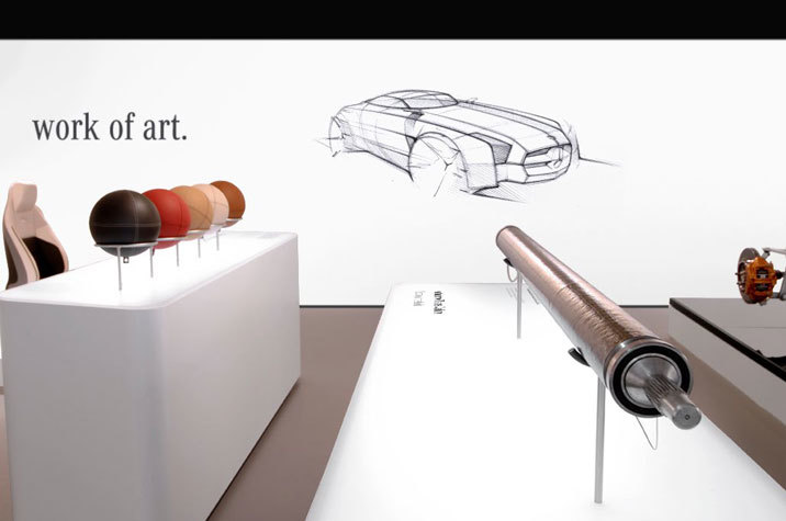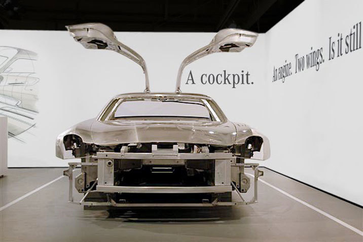 Eine Werkstattbox wird für die Zeit der internationalen Presseveranstaltung für die Präsentation der technischen Innovationen des neuen Mercedes SLS AMG Sportwagens umgestaltet. Danach geht es direkt zur Boxengasse für eine Testfahrt auf der legendären Rennstrecke Le Castellet.