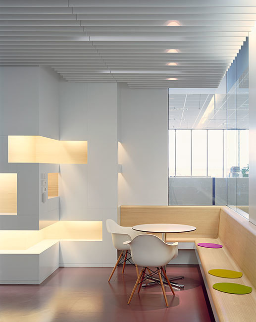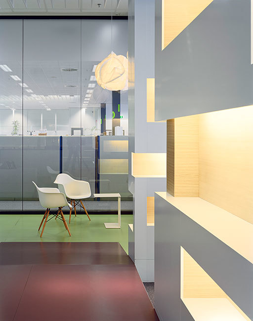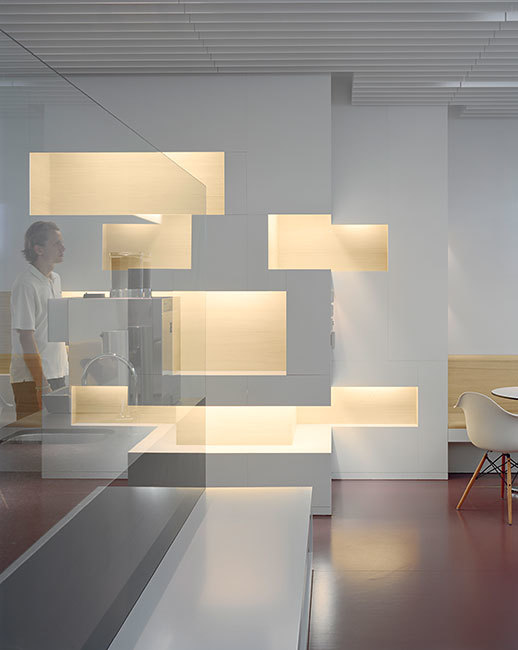 Kaffee Konferenz Kommunikation waren die Nutzungsvorgaben für die Konzeption und Gestaltung einer Multifunktionszone im Zentrum einer 5000m2 großen Bürofläche. 2008 Bauabschnitt 1.