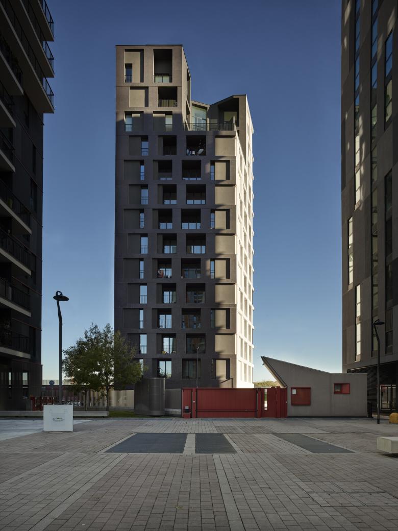 On the sides of the square two towers (fourteen and twelve meter high) define the space and seem to have been generated from the same volume, split in two by the public space. The two towers develop 10,830 square meters, distributed in 103 flats, all sold as affordable housing according to the Regional regulations. The ground floor of both towers houses the entrance hall and service spaces, such as bicycle storage, common room, gym, laundry and storage room for separate waste collection. C+S project was a pioneer, in 2011, in introducing ESG drivers when inserting hybrid and common spaces within the residential complex.