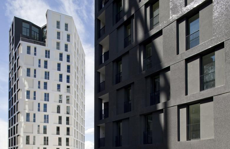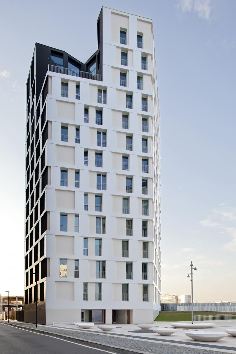The towers are arranged on two underground levels of parking for 104 cars, technical spaces and cellars as well as a colorful outdoor playground for children that was designed with a participatory project in collaboration with the Social Housing Foundation.