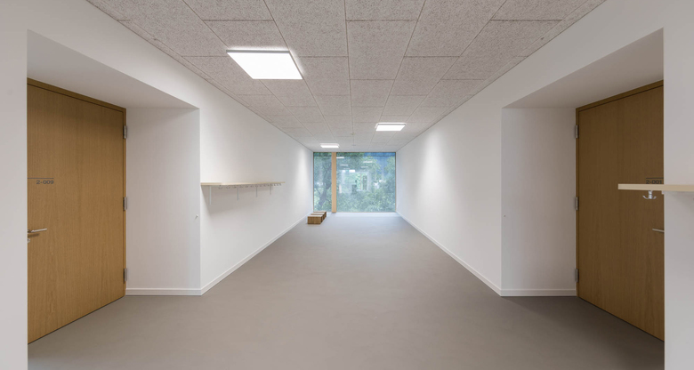 Erste zertifiziertes Energiehaus im Kanton – Das Berufs- und Weiterbildungszentrum des Kantons Uri wurde mit einem nachhaltig konzipierten Pavillonneubau erweitert. Der schlichte kubische Bau nimmt die Massstäblichkeit der umliegenden Bebauung auf. Er ist komplett als Holzbau konzipiert. Der Elementbau zeigt sich in der Fassade, welche sich dezent an die angrenzenden Gebäudekörper anpasst. Die Klassenzimmer sind von der Gesamtstruktur geprägt. Die Fenster weisen eine tiefe Brüstung auf, da der Sichtbezug der Schüler in den Aussenraum wichtig ist. Zwischen zwei Schulzimmer befindet sich jeweils ein Gruppenraum, welcher mittels verglasten Faltschiebetüren schliessbar ist. Die Fassade ist mit Lucido® Elementen verkleidet. Die thermoaktive Fassade schützt das Haus vor Wärmeverlust und gewinnt thermische Energie.