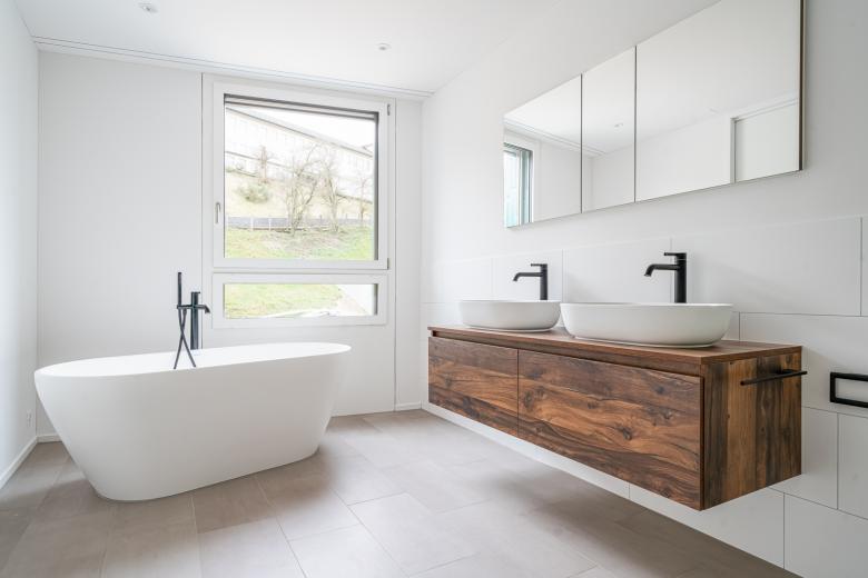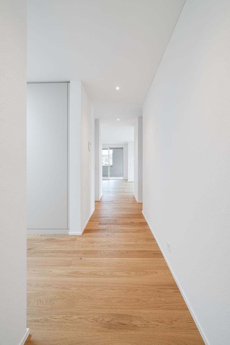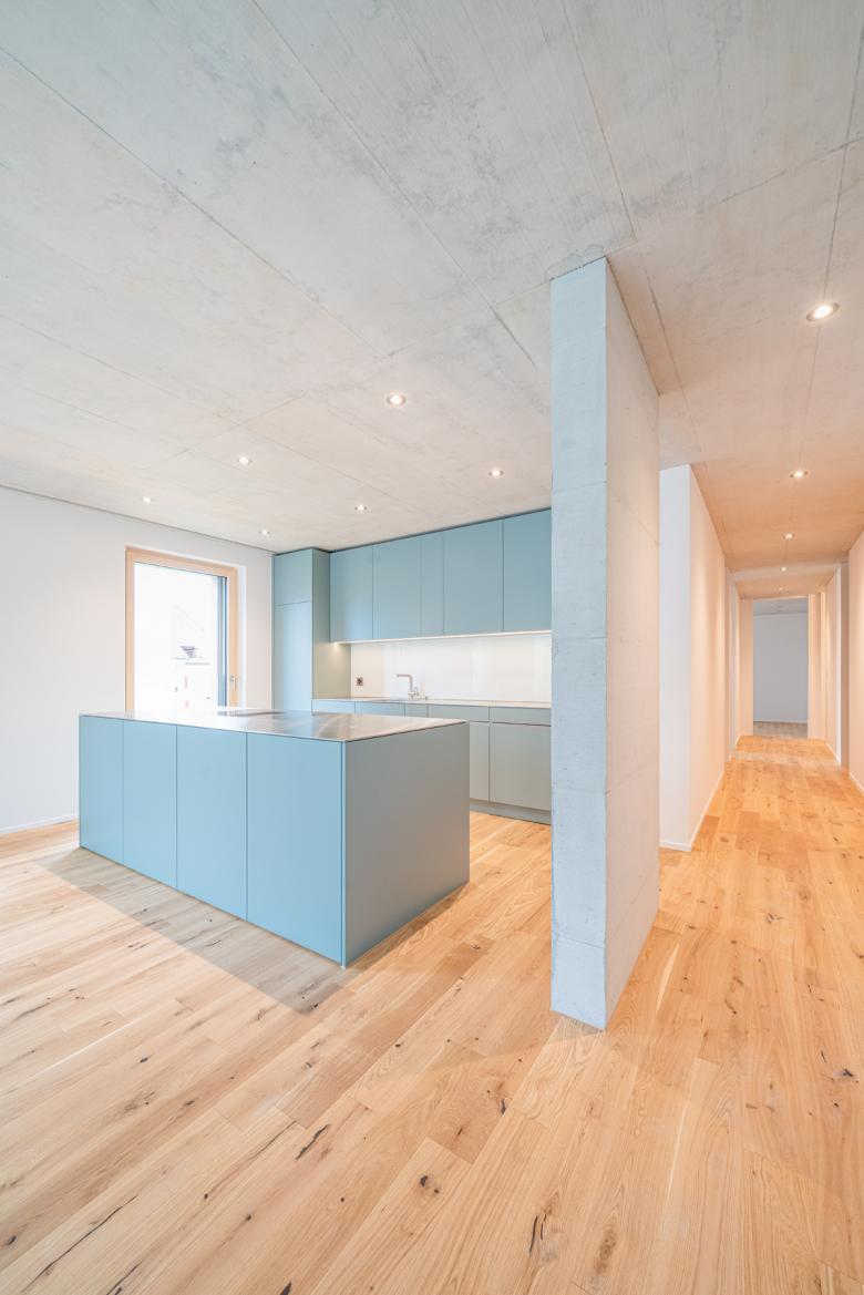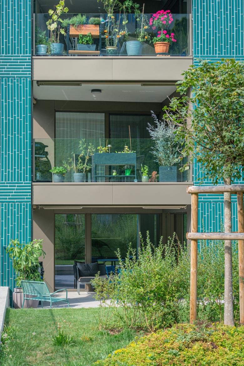 Der Aspekt der Nachhaltigkeit spielte bei der Planung eine wesentliche Rolle. Das Flachdach wird mit einer Photovoltaikanlage zur Energiegewinnung bestückt. Ein intelligentes Energiemanagementsystem misst den Energieverbrauch in Echtzeit und ist jederzeit mittels einer App einsehbar auf einem Smartphone, Tablet oder Computer. Das Gebäude wird zentral mit einer Wärmepumpe via Erdwärmesonden beheizt. Die Gebäudefassade, verkleidet mit Keramikplatten, setzt mit der aussergewöhnlichen Materialisierung ein klares Zeichen. Die cleveren Grundrisse bieten ein grosszügiges Raumgefühl.