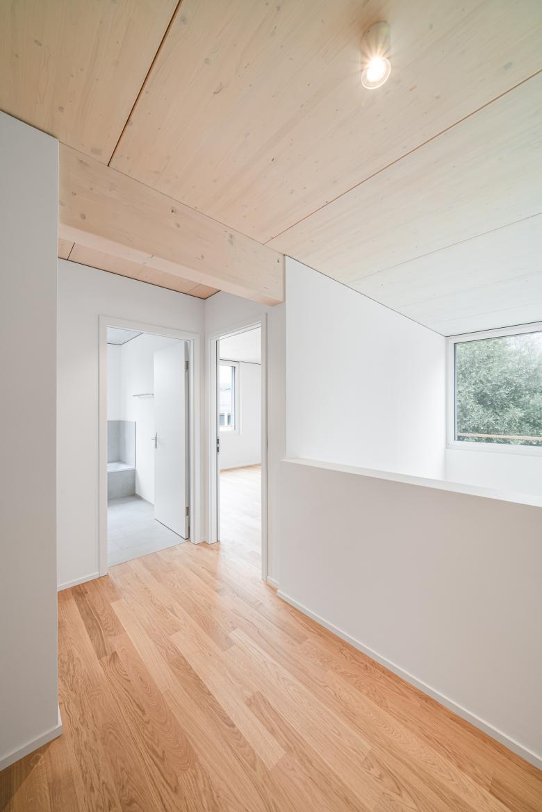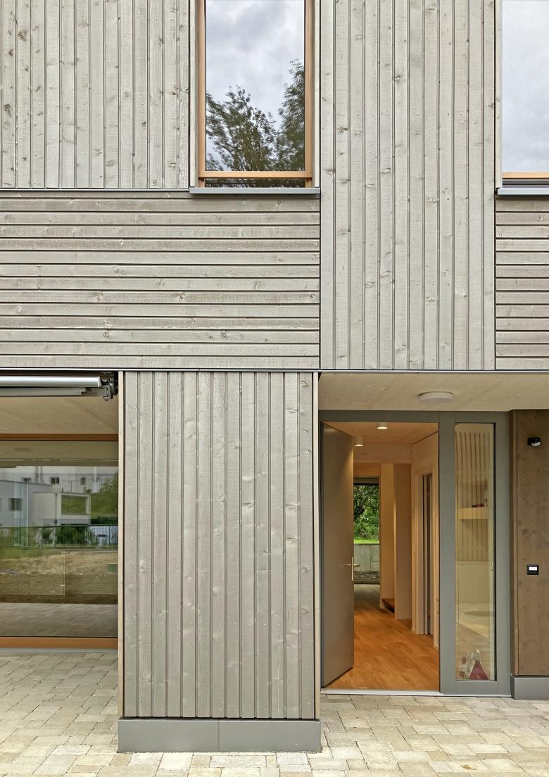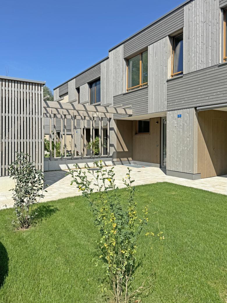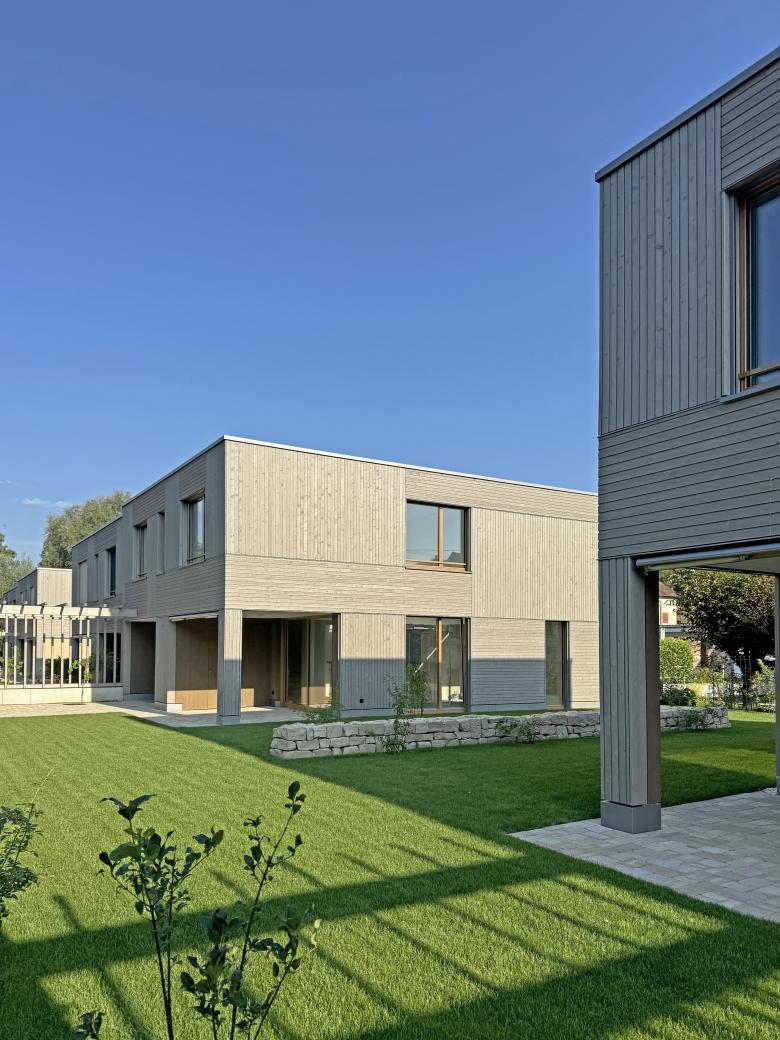 Beim Konzept spielen nebst städtebaulichen Überlegungen die Faktoren Ökologie, Ökonomie sowie Soziologie, respektive Nachhaltigkeit eine tragende Rolle. Die vier Gebäudekörper bestehen aus je zwei gespiegelten und zusammengebauten Einfamilienhäusern. Diese erstrecken sich entlang dem Diebach beziehungsweise der neuen Diebachstrasse. Die neuen Häuser bilden einen präzisen und einheitlichen Abschluss des Wohnquartieres gegen die neue Diebachstrasse. Sie bestehen grundsätzlich aus gleichen, wiederkehrenden und vorgefertigten Holzelementen. Die natürlich vorvergraute klassische Holzschalung wird neuzeitig horizontal und vertikal verlegt. Es entsteht ein spannungsvolles und unaufgeregtes Fassadenbild, welches gleichzeitig die Nachhaltigkeit dieser Siedlung aufzeigt.