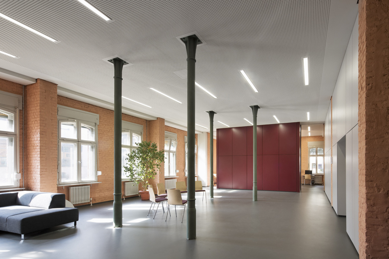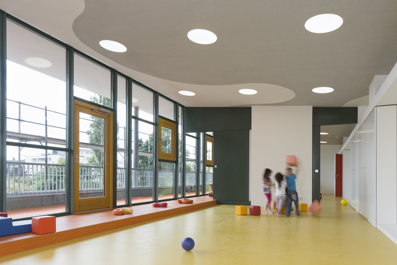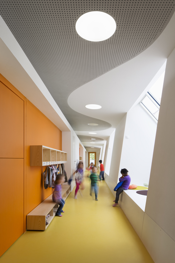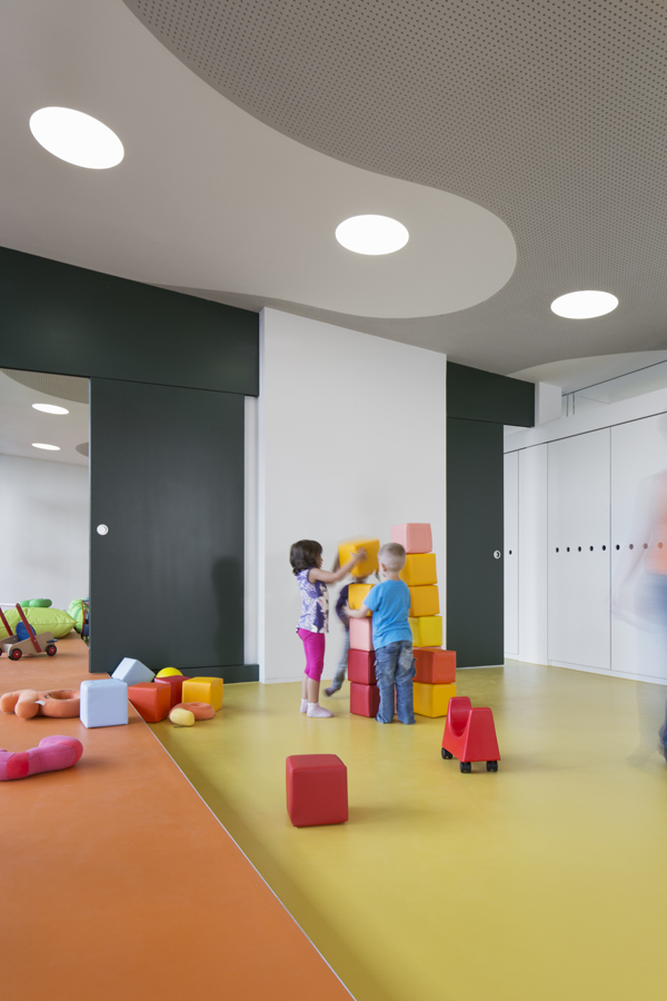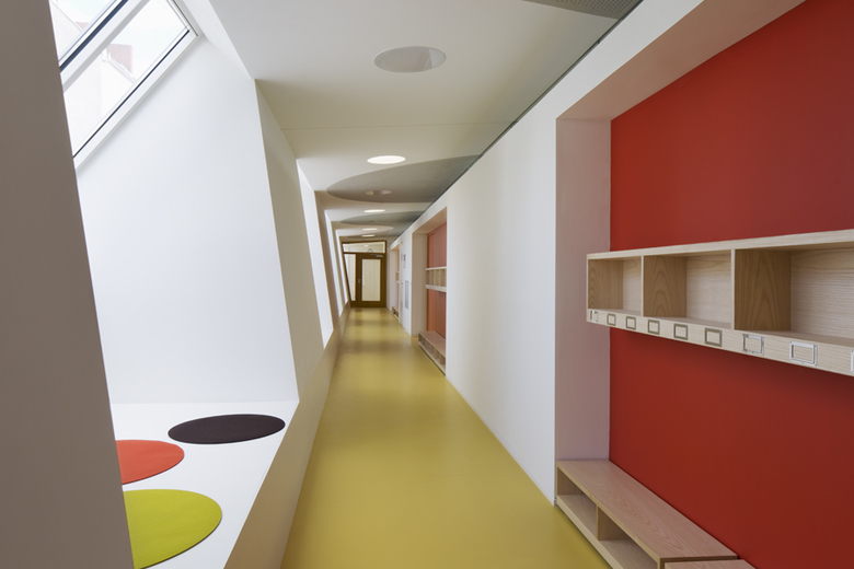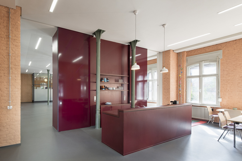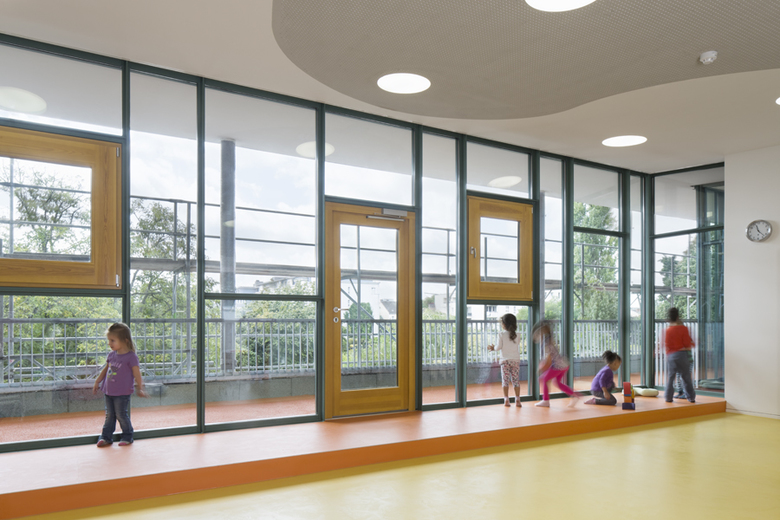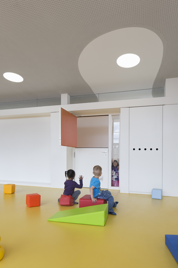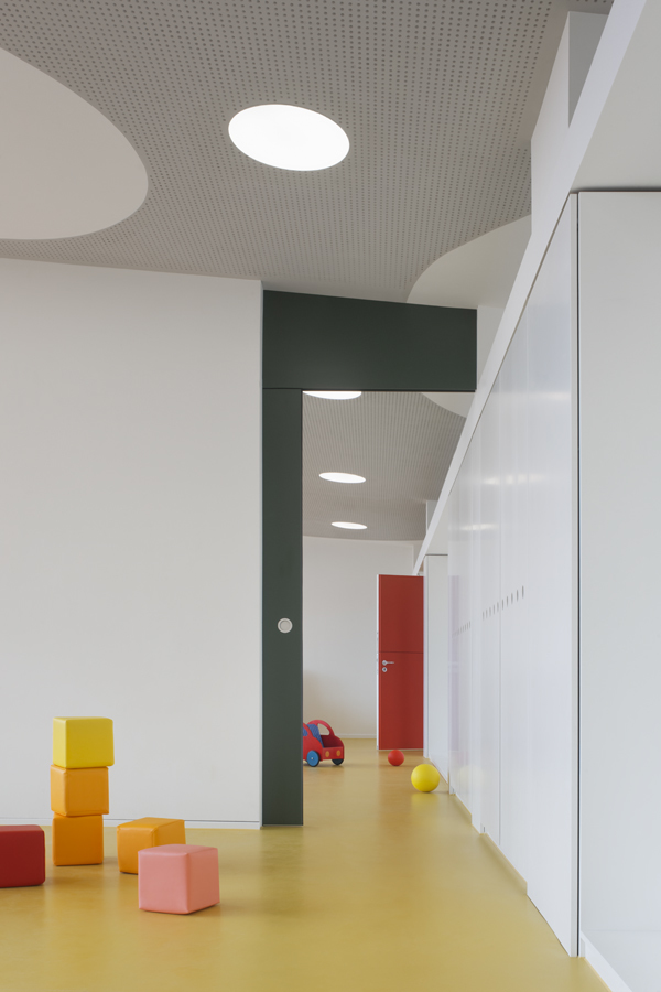 Aufstockung der Kindertagesstätte um weitere Gruppenräume und Erweiterung des denkmalgeschützen Pfarrhauses zu einem Familienzentrum. Im vorderen 1902 errichteten Bestandsbau, der zu den baulichen Denkmälern von Berlin gehört und ursprünglich als Pfarrhaus und Kapelle genutzt wurde, werden die Einbauten entfernt, um die ursprüngliche Geometrie der ehemaligen Kapelle wieder erfahrbar zu machen. Dabei werden alte gusseiserne Stützen und das Mauerwerk freigelegt, um dem Raum seine Atmosphäre wieder zu geben. Durch eine Aufteilung in Büro, Familienzentrum und Cafeteria wird der Raum neu bespielt und kann für unterschiedliche Nutzungen und Veranstaltungen genutzt werden. Im Zuge der Baumaßnahmen wird der hintere flachgestreckte Baukörper durch eine Dachaufstockung ergänzt, unter der sich die neuen Gruppenräume befinden werden. Sowohl das Treppenhaus als auch das Bestandsgebäude werden in einer Form erweitert, so dass nun ein Gebäude mit einem Dachgeschoss entsteht.