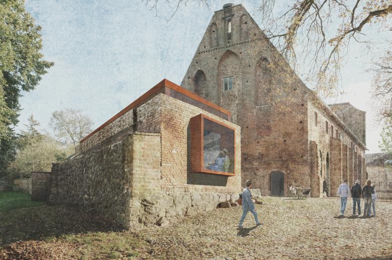 Der Entwurf fügt sich äußerst zurückhaltend in das qualitativ hochwertige Bestandsensemble ein und verfolgt die Leitlinie altes zu bewahren und fehlendes oder marodes zu „heilen“. Neue bauliche Elemente zeigen sich minimal und filigran und sind klar als moderne Addition zum Bestand zu erkennen.