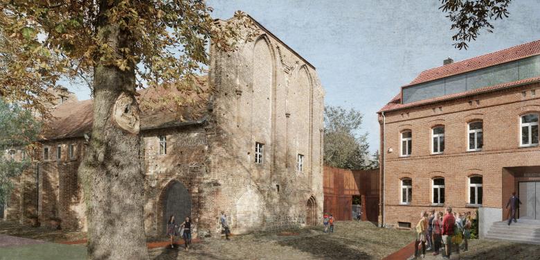 Umbau des denkmalgeschützten, ehemaligen Klausurflügels eines Franziskanerklosters sowie eines alten Schulgebäudes zu der neuen Stadtbibliothek Gransee und neuen öffentlichen Ausstellungsräumen. Ein neuer Verbindungsbau überbrückt zwischen den beiden Beständen.