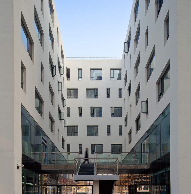 Xuzhou Gulou Public Service Centre is located close to the old Yellow River course on Zhongshan Bei Road near to the heart of the city. The site is close to square-shaped and limited to a height of 24 metres due to urban planning requirements. We first determined the maximum volume in the space and using a "Volume Reduction" research strategy chose a U-shaped model proposal. The two-plated office buildings are installed two parallel blocks. The office building faces towards the east and west. A shared garden will be interted in the centre.