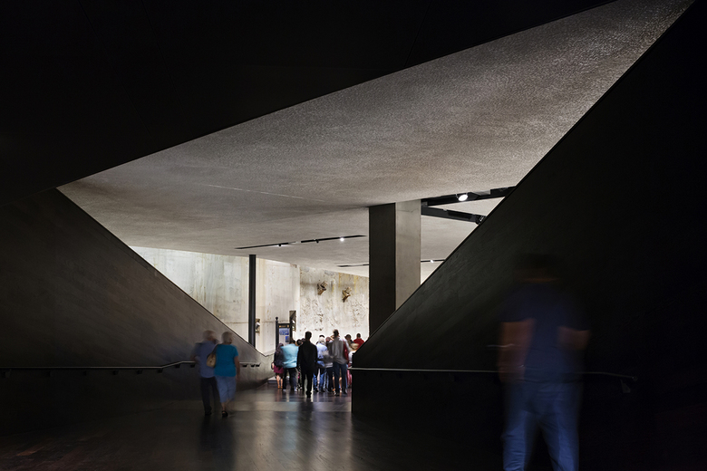 The Museum was conceived as the global focal point for presenting and preserving the history and memories of the events of 9/11, documenting the impact of the attacks, and exploring their enduring significance. Located nearly 70 feet beneath the 9/11 Memorial at the World Trade Center, the Museum occupies the vast space at the remaining traces of the two towers inscribed in bedrock. The 110,000-sf museum offers visitors access to the monumental underground site where remnants of the Trade Center’s construction and recovery frame the story of the terrorist attacks and the days that followed.