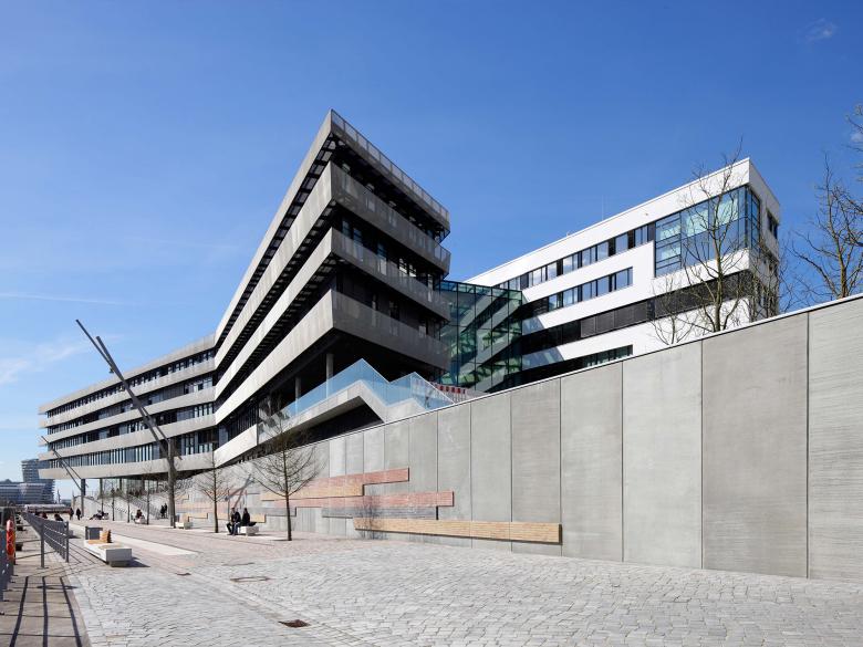 Das fünfgeschossige Gebäude an der Überseeallee in der Hafencity bietet neben Hörsälen, Werkstätten, Laboren und Büros eine Mensa und eine Bibliothek - mit allerschönstem Blick auf die Elbe. Knapp 2.500 Studierende lernen nun am Puls des in Europa größten innerstädtischen Stadtentwicklungsprojektes.